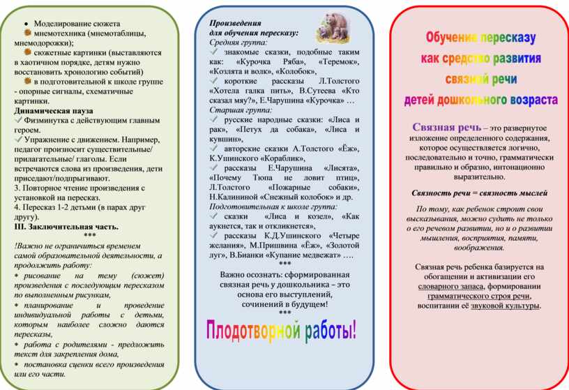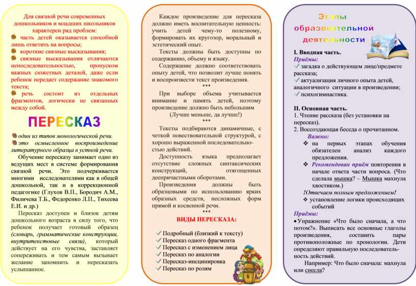 Буклет : " Обучение пересказу как средство развития связной речи у дошкольников"