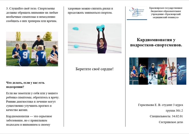 Буклет для родителей "Профилактика кардиомиопатии у подростков-спортсменов".