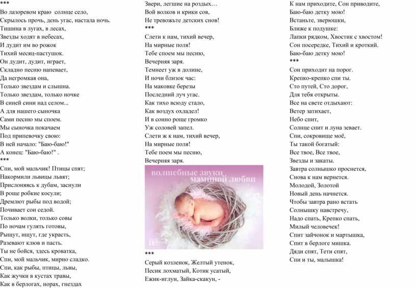 колыбельных песен перед сном. Несравнимо более важен эмоциональный посыл,