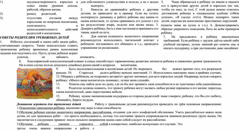 СОВЕТЫ РОДИТЕЛЯМ ТРЕВОЖНЫХ ДЕТЕЙ