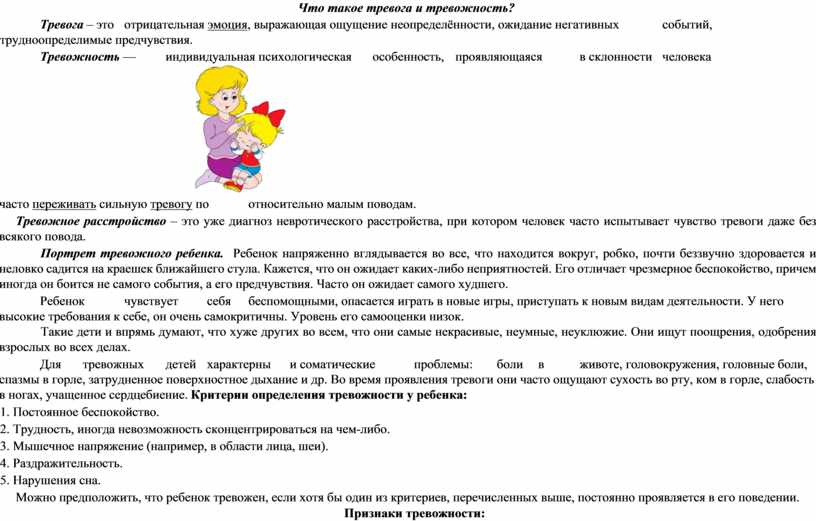 Можно предположить, что ребенок тревожен, если хотя бы один из критериев, перечисленных выше, постоянно проявляется в его поведении.