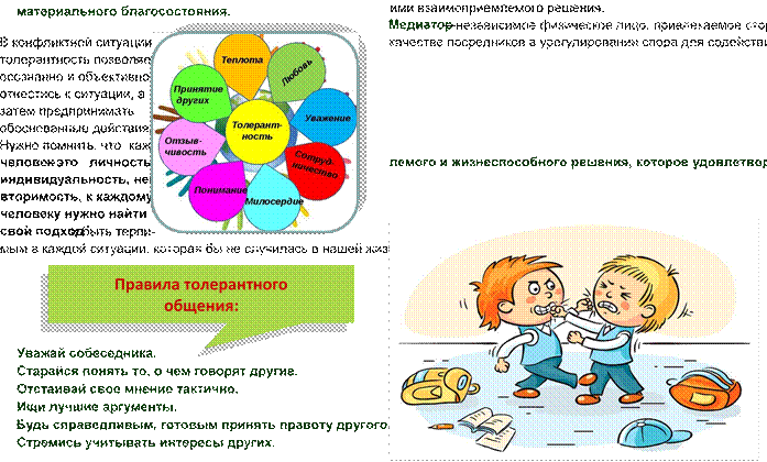 • межклассовая – уважение всех людей независимо от их медиатора на основе добровольного согласия сторон в целях достижения