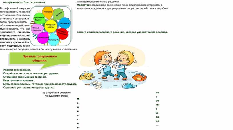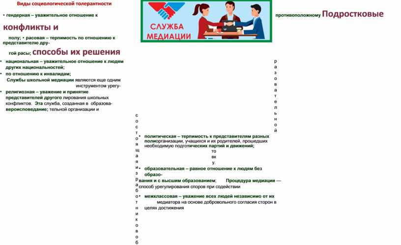 • религиозная – уважение и принятие представителей другого лирования школьных конфликтов. Эта служба, созданная в образова-