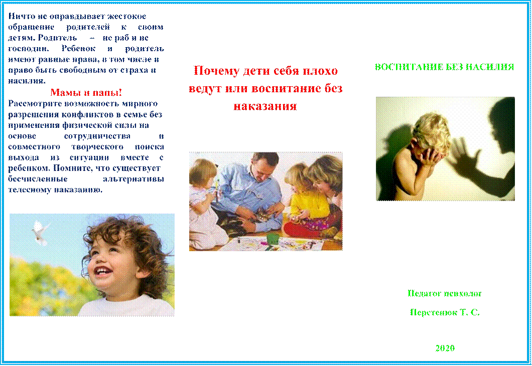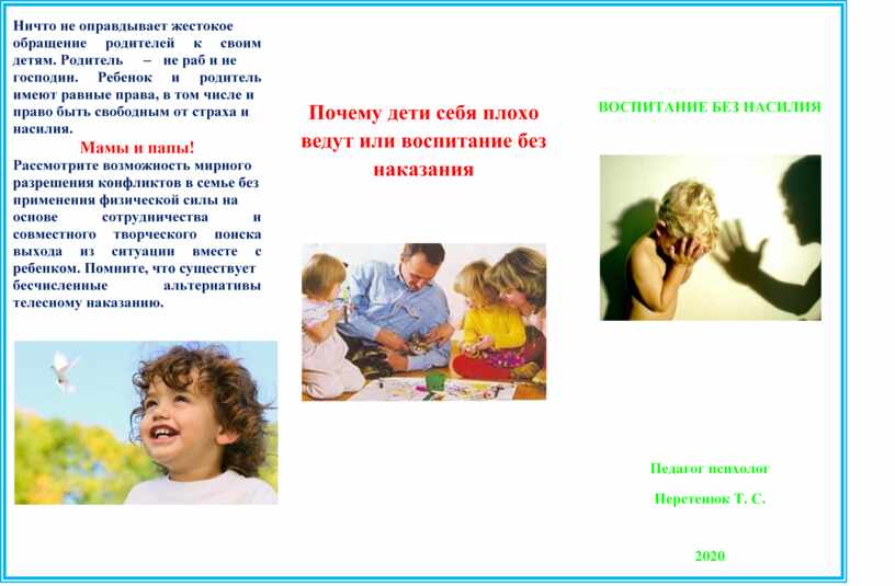 Телесные наказания детей являются одной из форм агрессии; они негативно отражаются на уровне самооценки ребенка, уменьшая его настрой на конструктивное взаимодействие, вызывая протест.