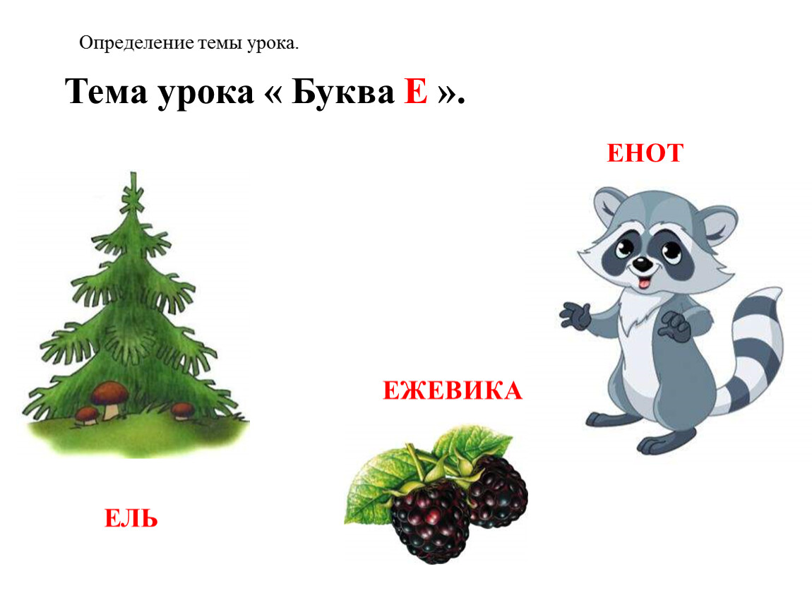 -Давайте еще раз произнесем слова: ель, ежевика , енот.