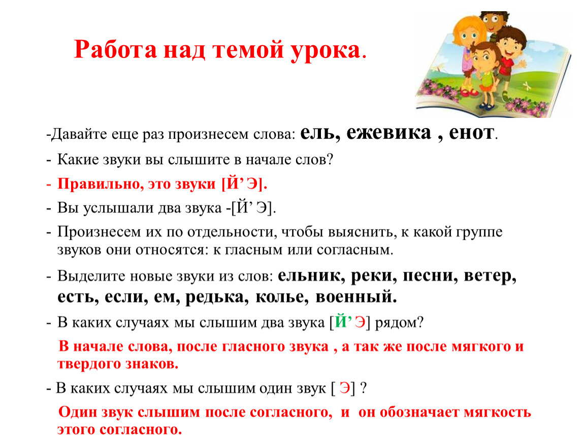 Выделите новые звуки из слов: ельник, реки, песни, ветер, есть, если, ем, редька, колье, военный.