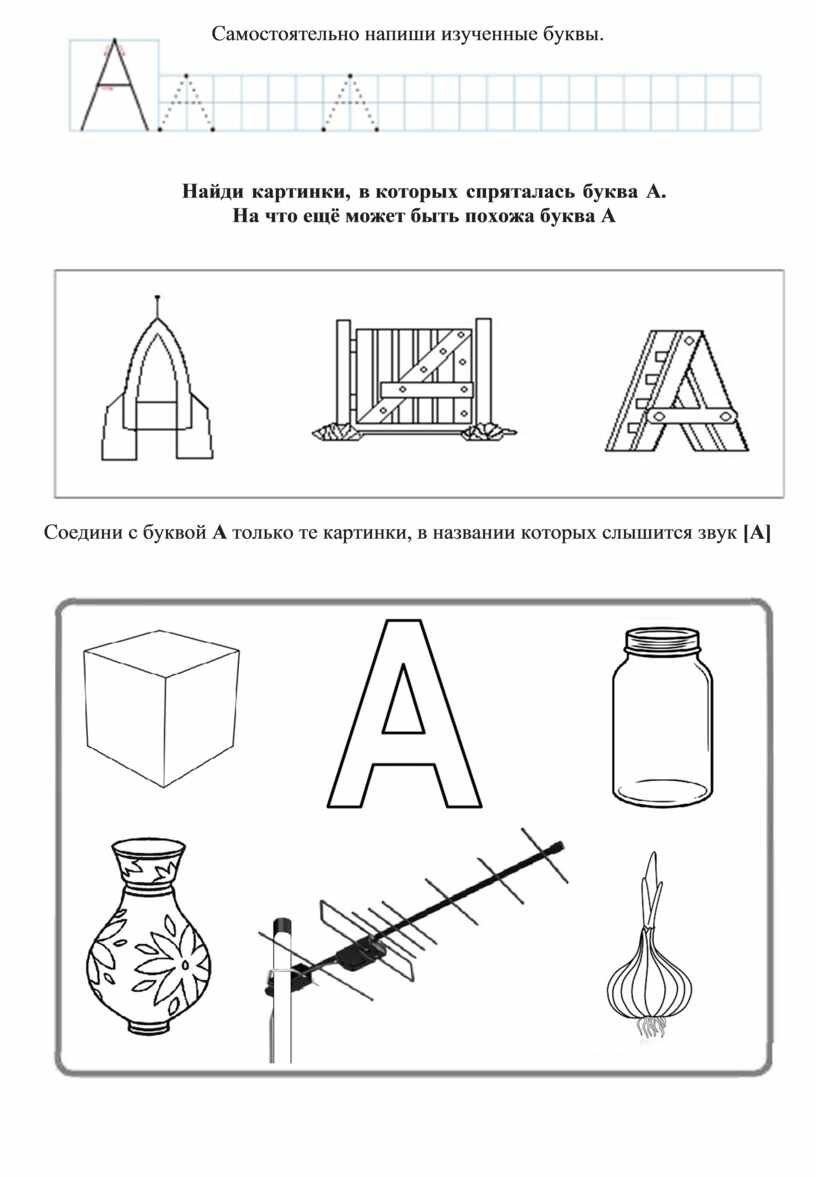 Найди картинки, в которых спряталась буква А.