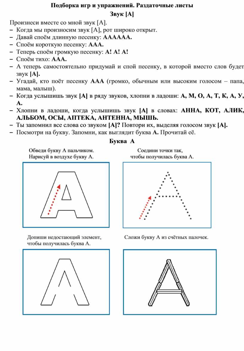 – Ты запомнил все слова со звуком [А]? Повтори их, выделяя голосом звук [А].