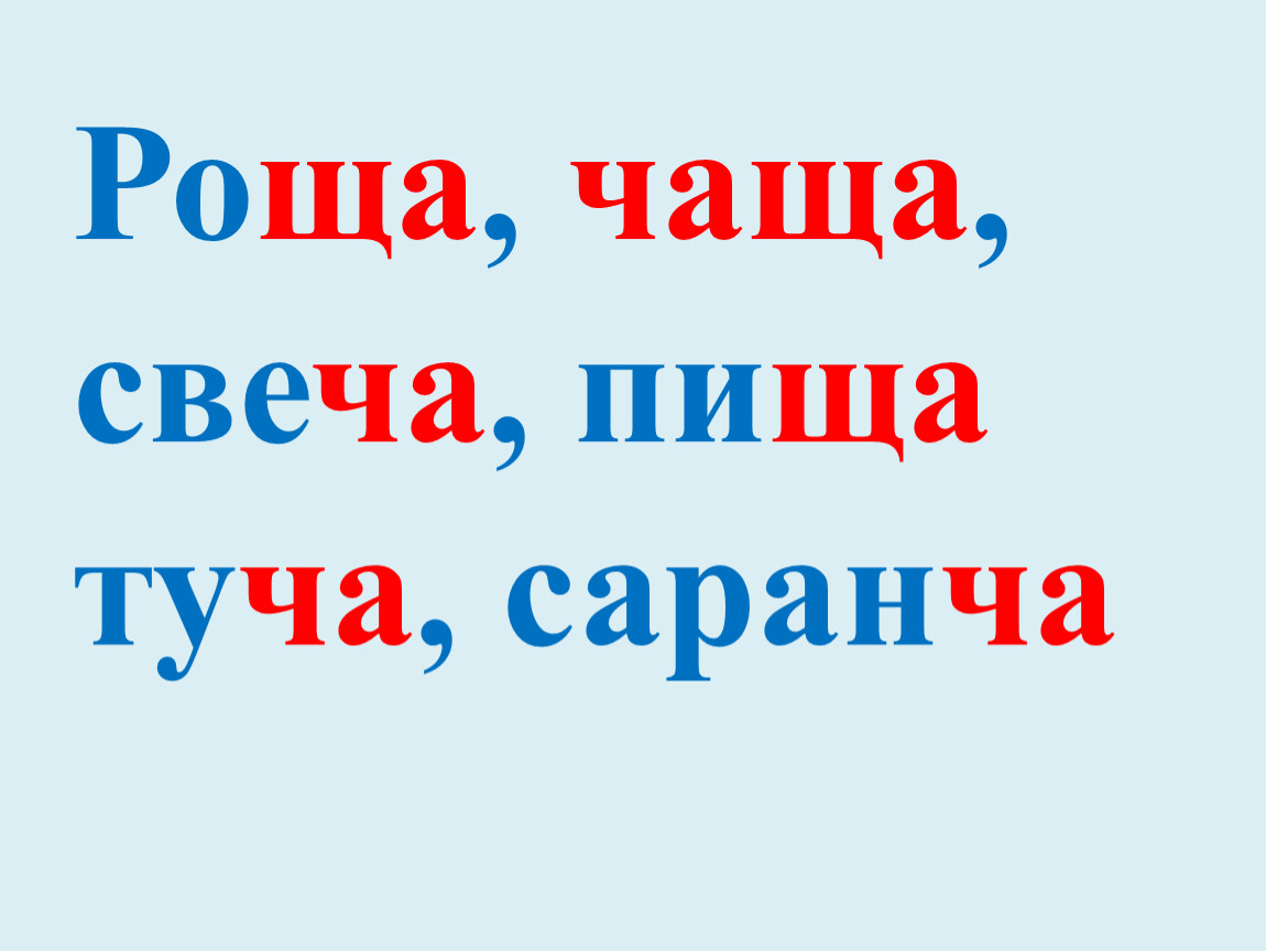 Роща, чаща, свеча, пища туча, саранча