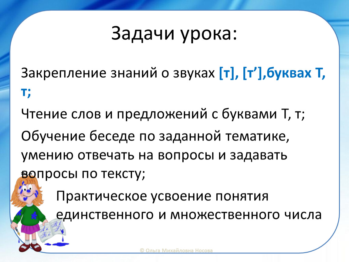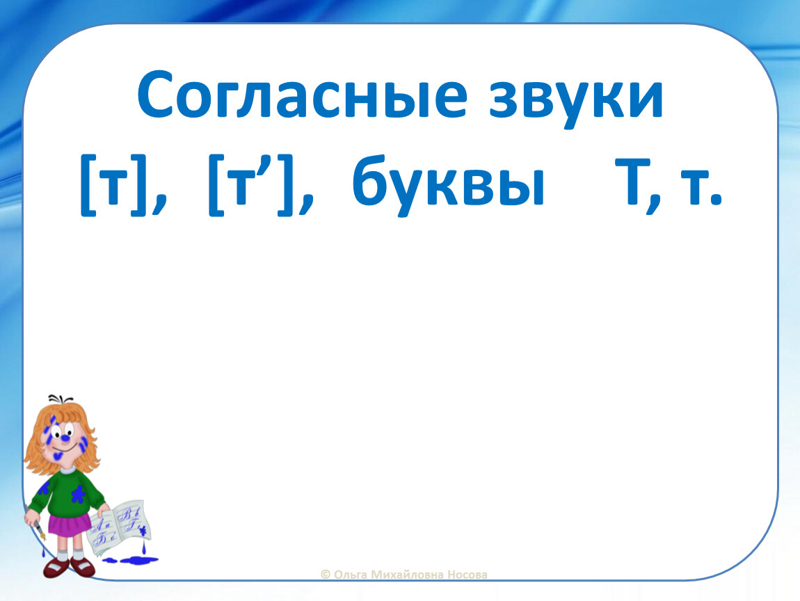 Закрепление знаний о звуках [т], [т’],буквах Т, т;