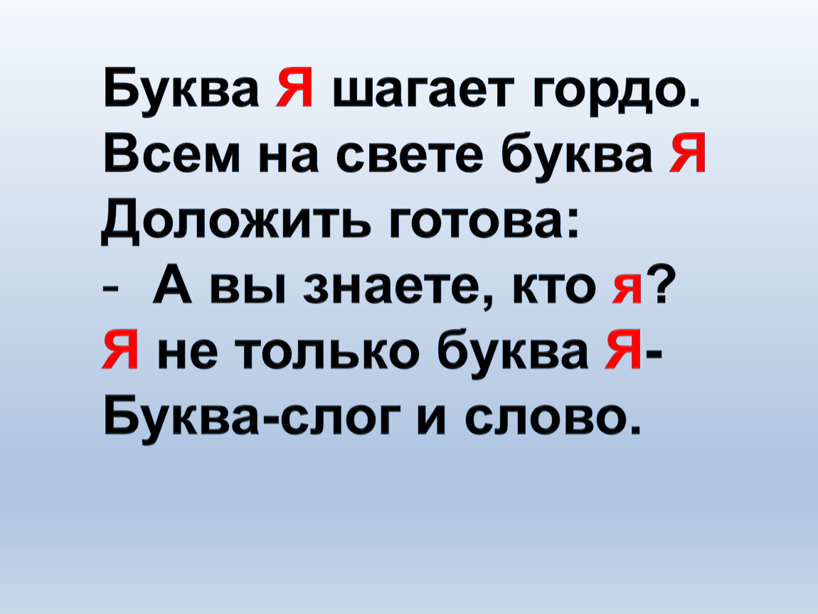 Буква Я шагает гордо.