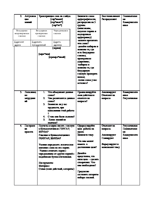 2. Закрепить новые знания путем разработки алгоритма о правописании чередующихся гласных в корне ЗОР-ЗАР -ГОР-ГАР-