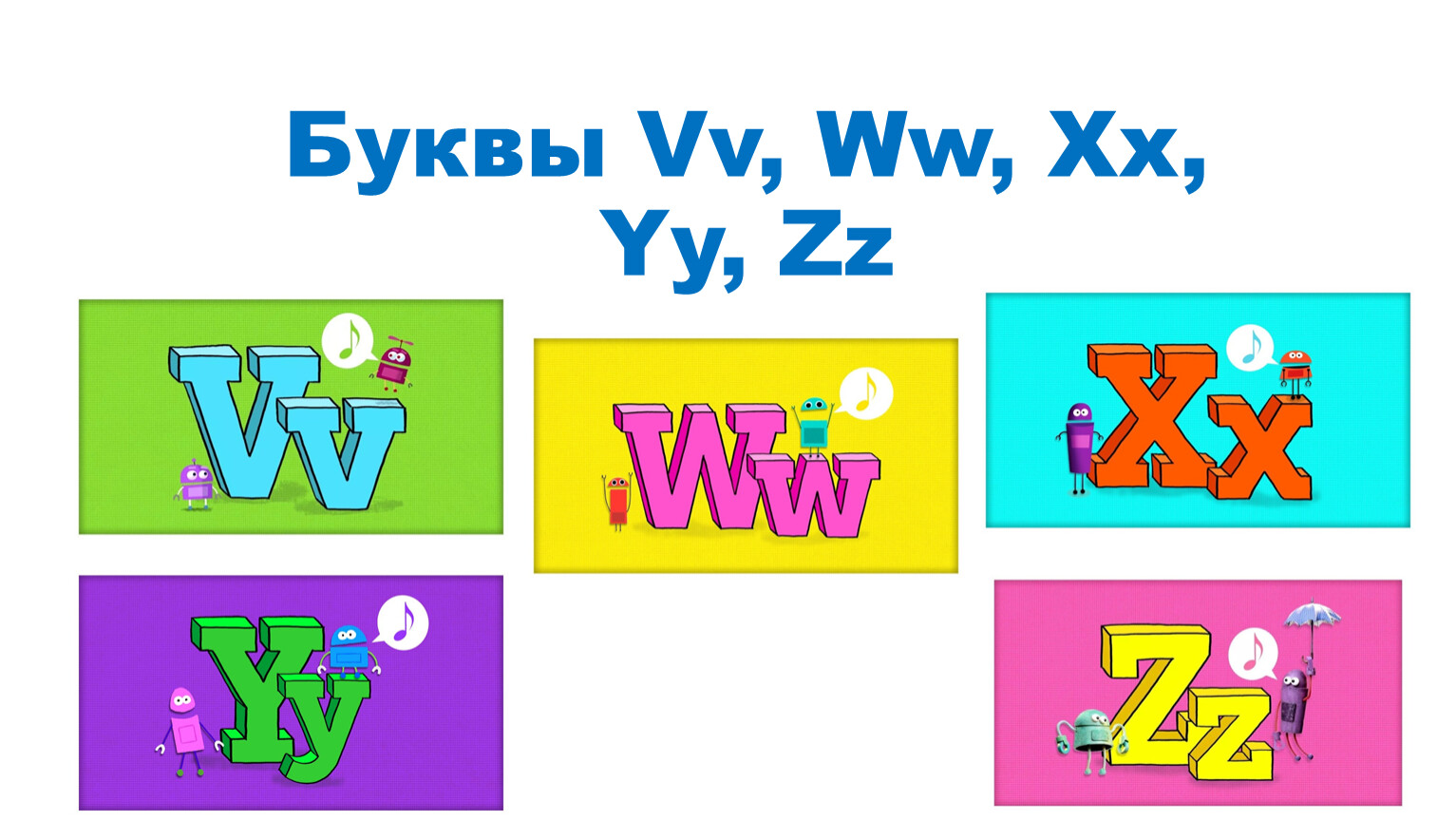 Буквы Vv, Ww, Xx, Yy, Zz