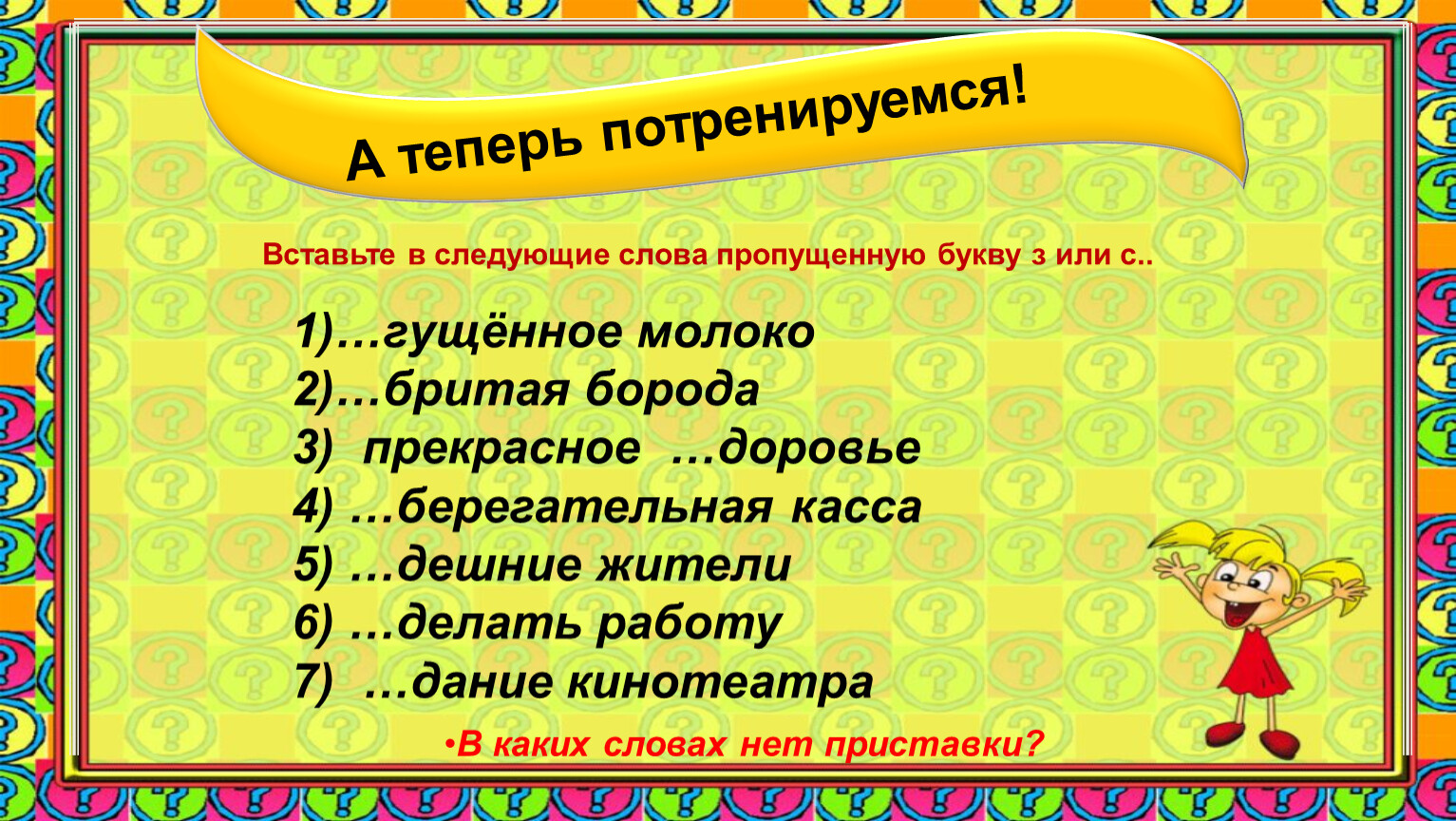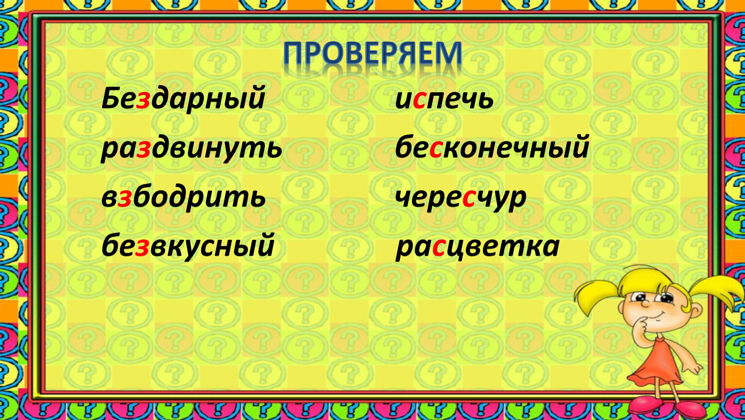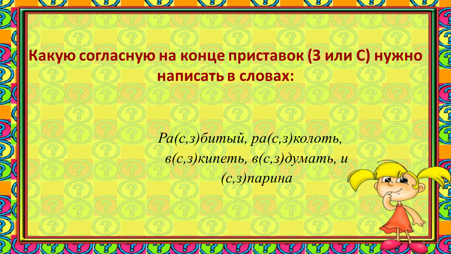 Какую согласную на конце приставок (З или С) нужно написать в словах: