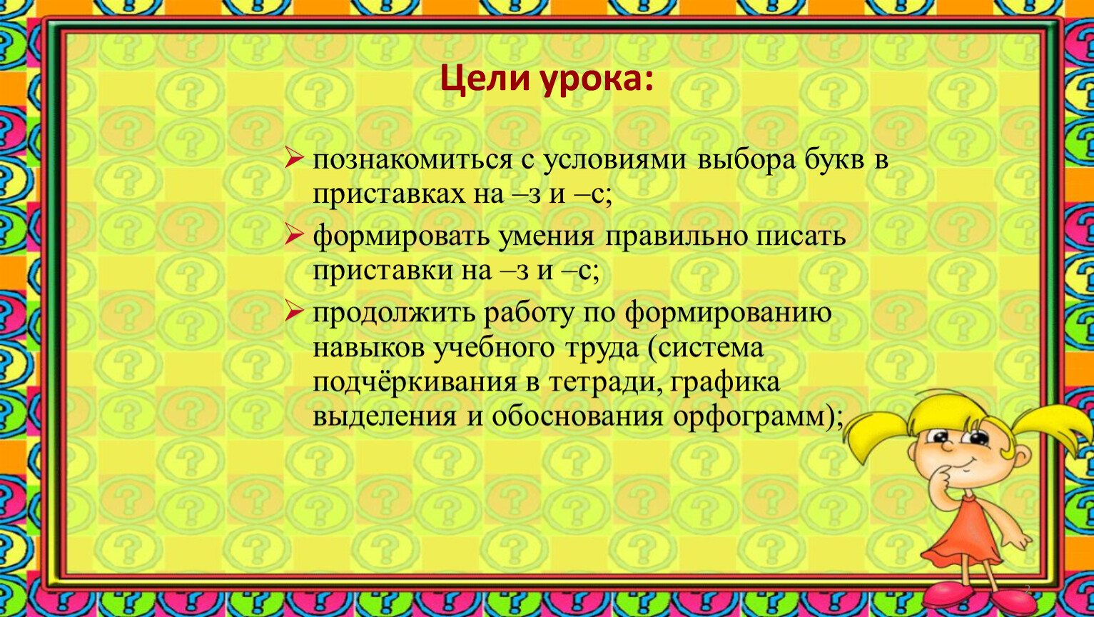 познакомиться с условиями выбора букв в приставках на –з и –с;