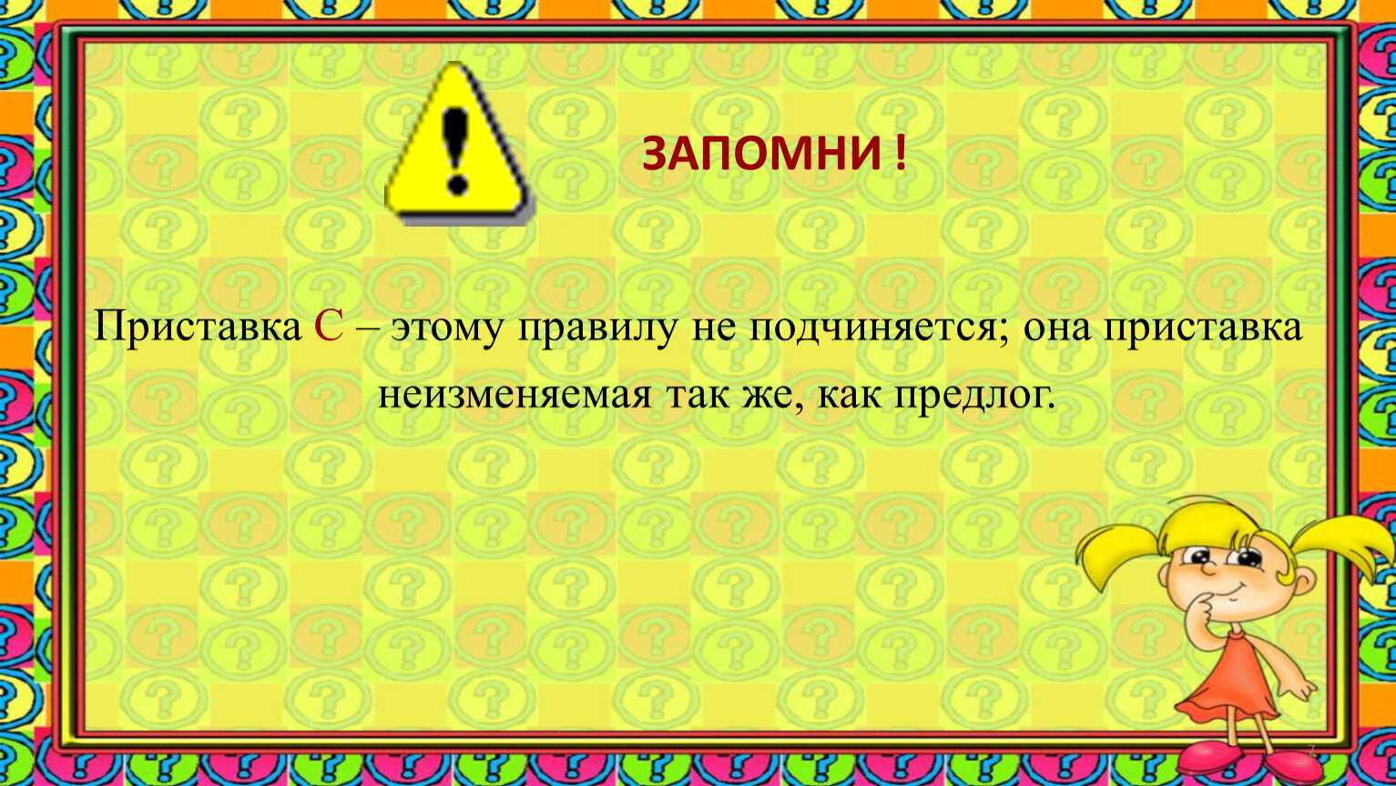 Приставка С – этому правилу не подчиняется; она приставка неизменяемая так же, как предлог.