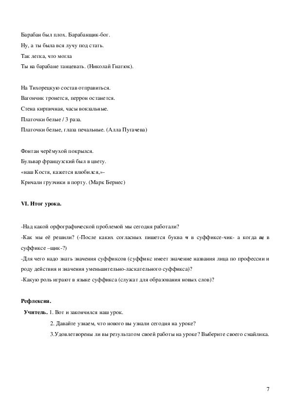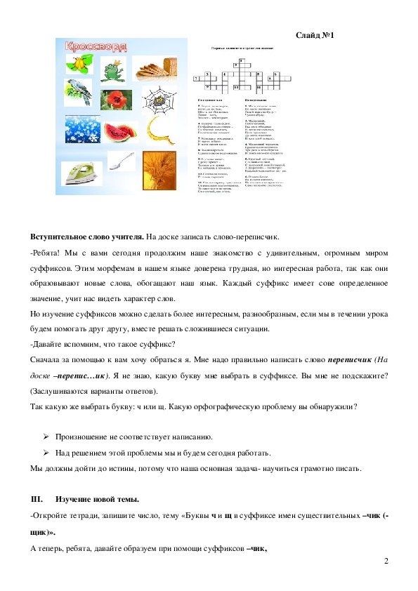 суффиксы –чик(щик); устно рассуждать и письменно объяснять условия выбора букв ч и щ