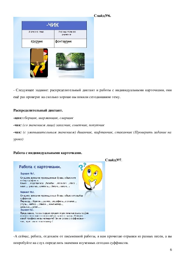 1 вариант – с суффиксами –чик, а 2 вариант с суффиксом щик (на партах разложены карточки с