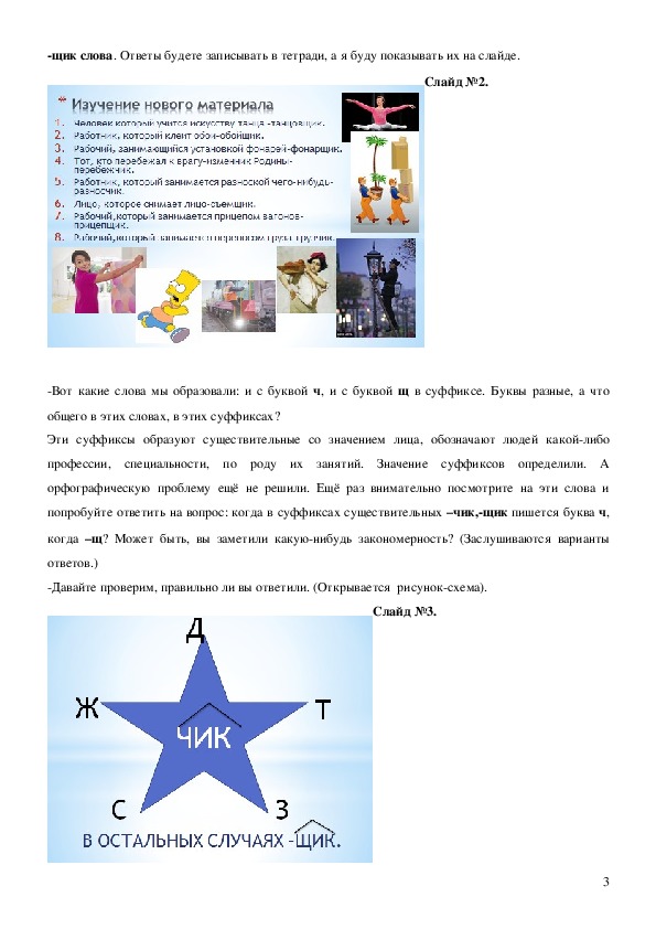 существительных суффиксов –чик, щик; научить применять этот способ действия для правильного