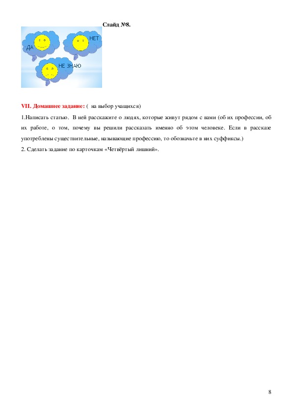 VII. Домашнее задание: ( на выбор учащихся)