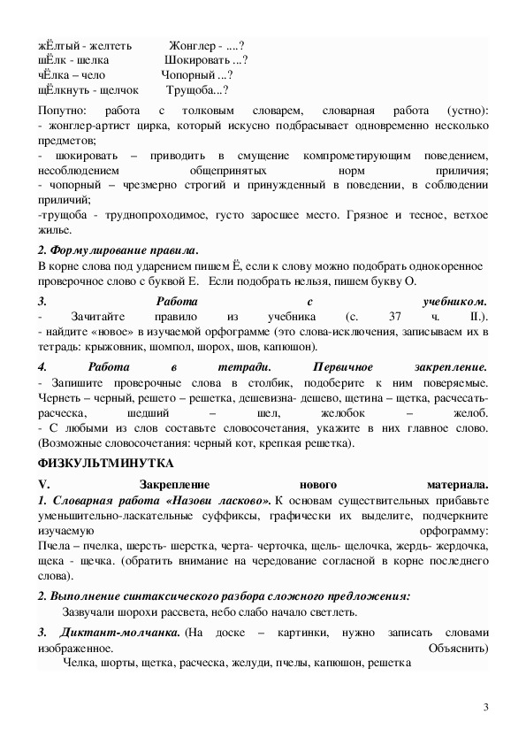 Тема урока: «Буквы ёо после шипящих в корне слова»