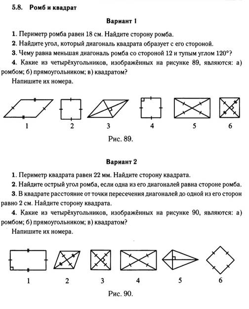 БЫСТРЫЙ КОНТРОЛЬ ДЛЯ 8 КЛАССА:"РОМБ И КВАДРАТ"