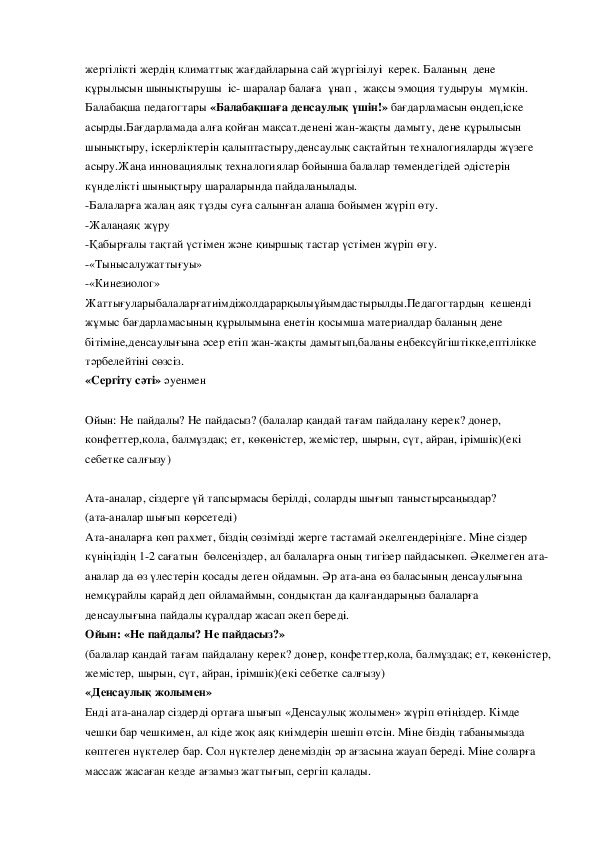Балаларды таза ауада жүруге, дұрыс тамақтануға тәрбиелеу.