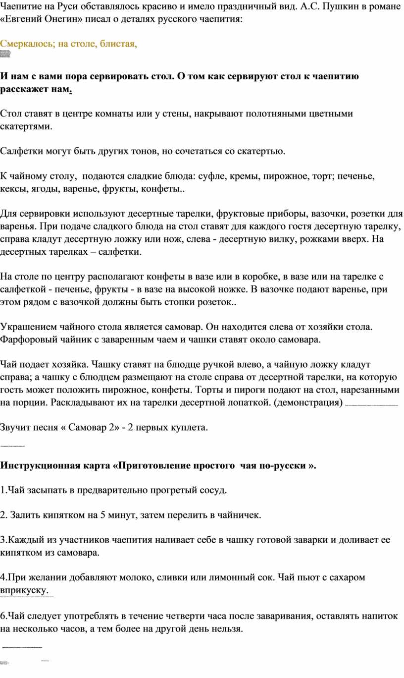 Тема: «Традиции русского чаепития»