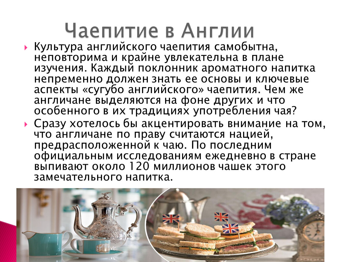 Культура английского чаепития самобытна, неповторима и крайне увлекательна в плане изучения. Каждый поклонник ароматного напитка непременно должен знать ее основы и ключевые аспекты «сугубо английского» чаепития. Чем же англичане выделяются на фоне других и что особенного в их традициях употребления чая?