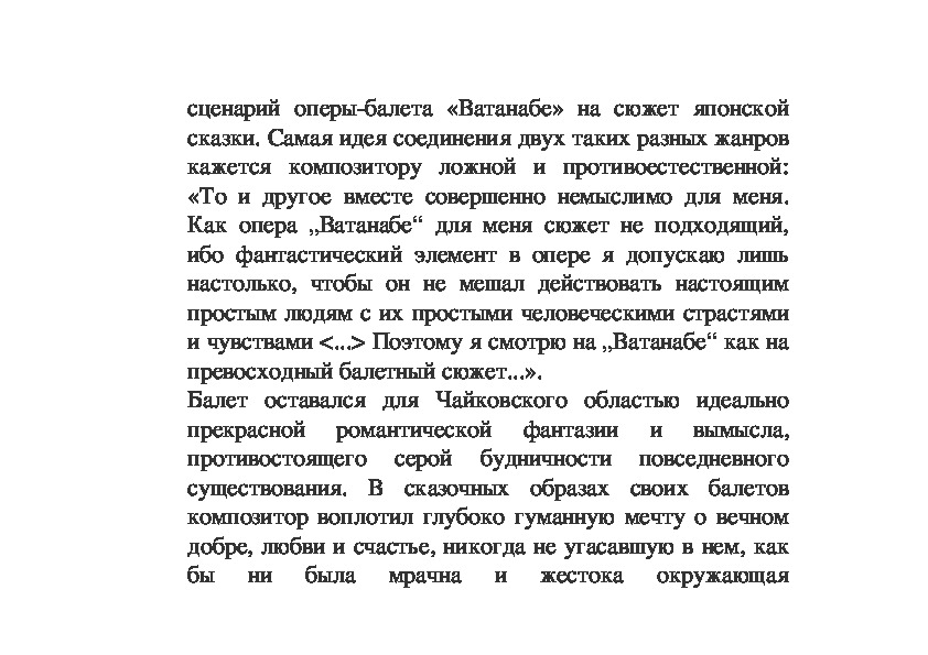 поставлен в 1892, Мариинский театр, Петербург)Как свидетельствует Кашкин, Чайковскому «с давних пор