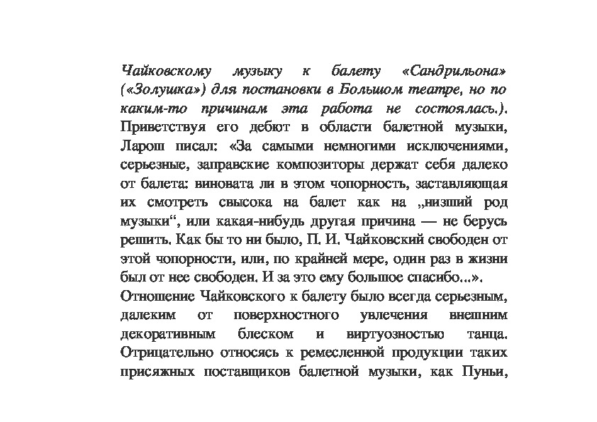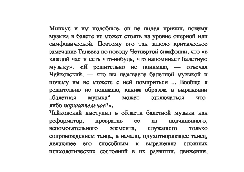 присяжных поставщиков балетной музыки, как Пуньи,Минкус и им подобные, он не видел причин, почему
