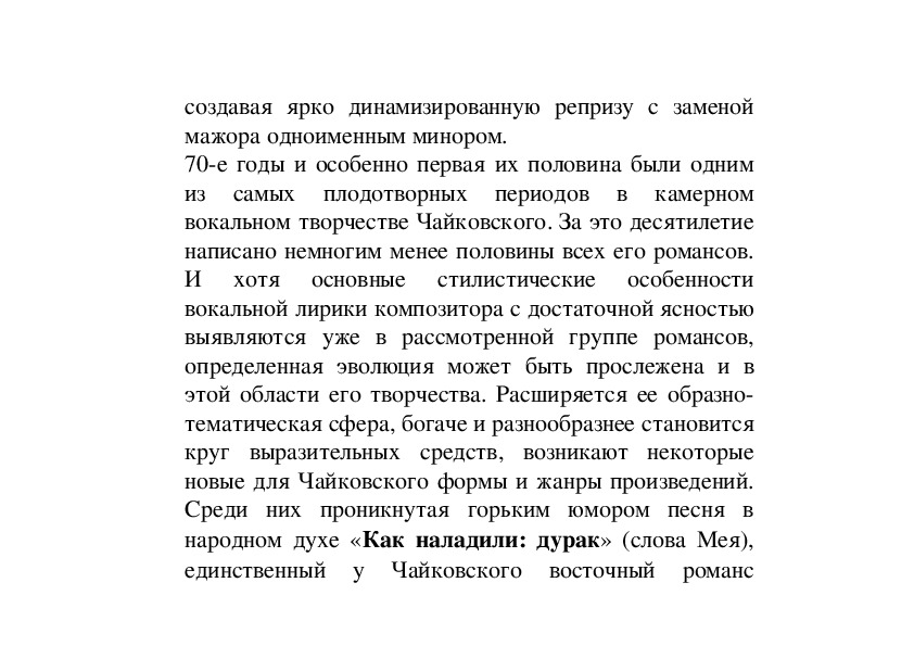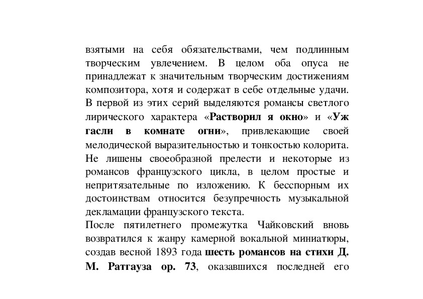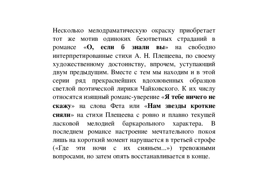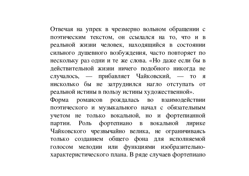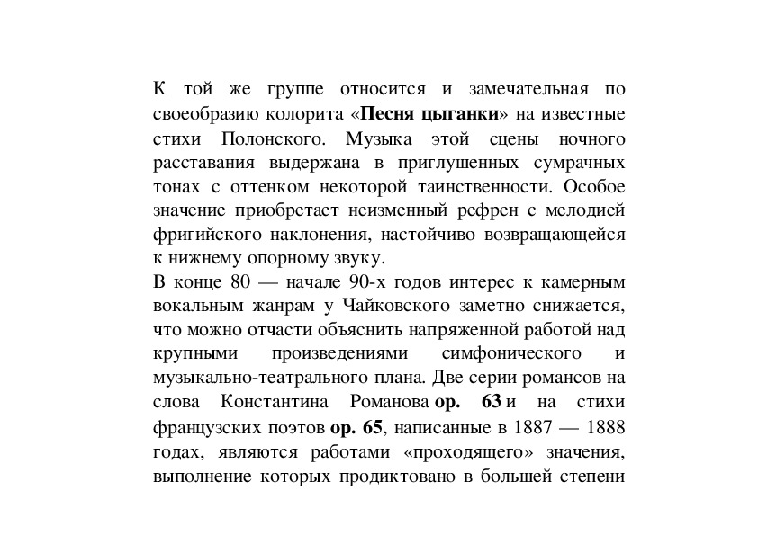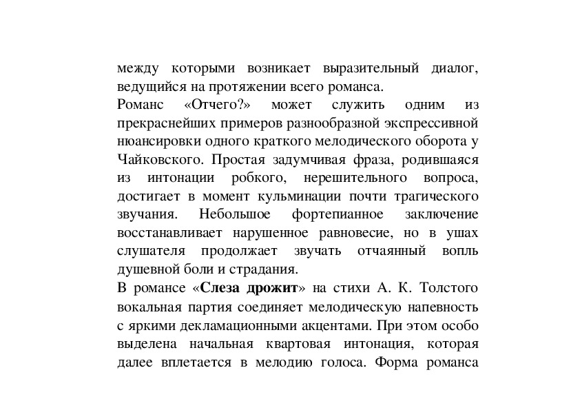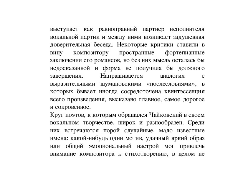 Камерное вокальное творчество было для Чайковского своего рода лирическим дневником, в котором запечатлены многие мотивы, получившие затем более развитое воплощение в его крупных произведениях оперного или симфонического плана. Чувства острого душевного разлада и неудовлетворенности, страстная жажда счастья и горечь несбывшихся мечтаний являются эмоциональной доминантой его вокальной лирики, отразившей то, что переживали многие в эпоху бурного роста личного самосознания, больших надежд и горьких разочарований, все усиливавшегося несоответствия между высокими порывами к идеалу и томительно однообразными серыми буднями повседневного бытия. В этом источник огромной популярности романсов Чайковского среди самых широких слоев общества.