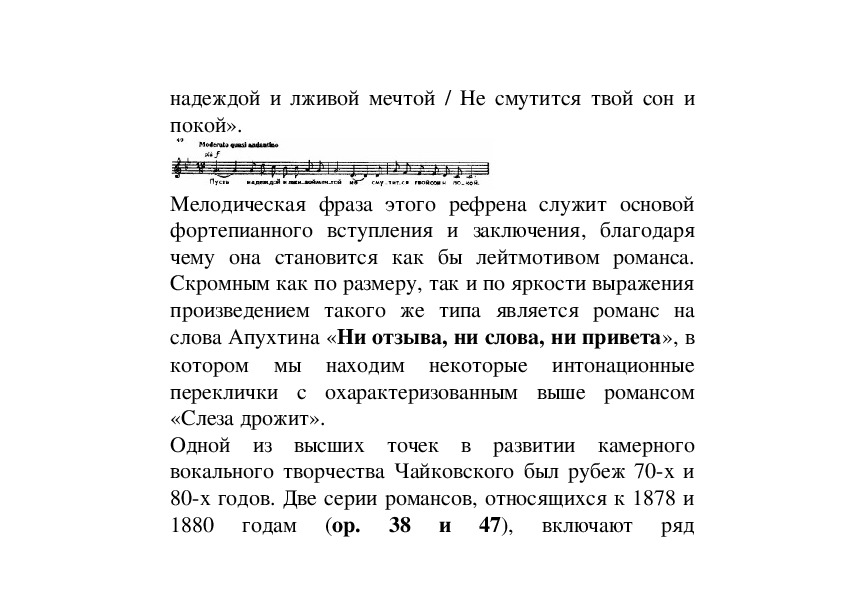 слова Апухтина «Ни отзыва, ни слова, ни привета», в