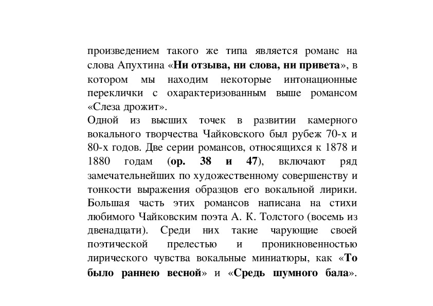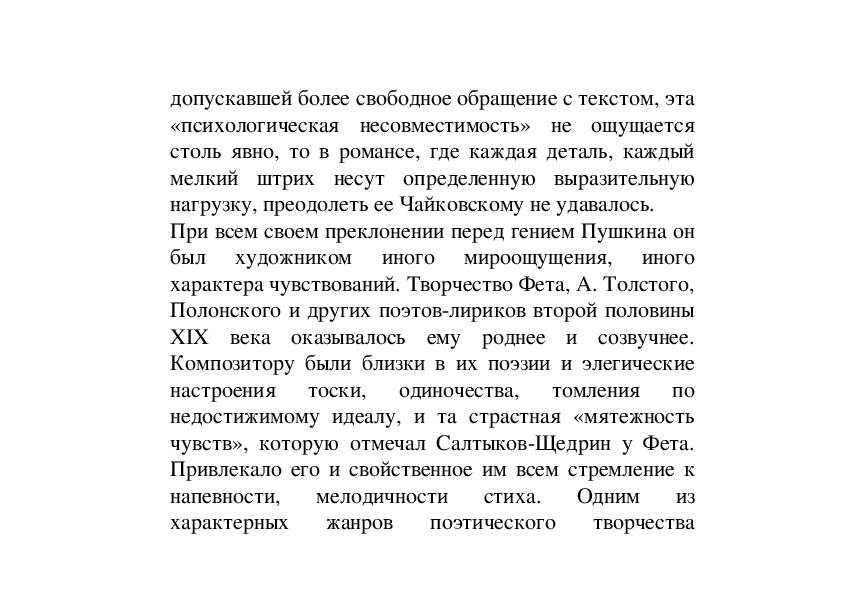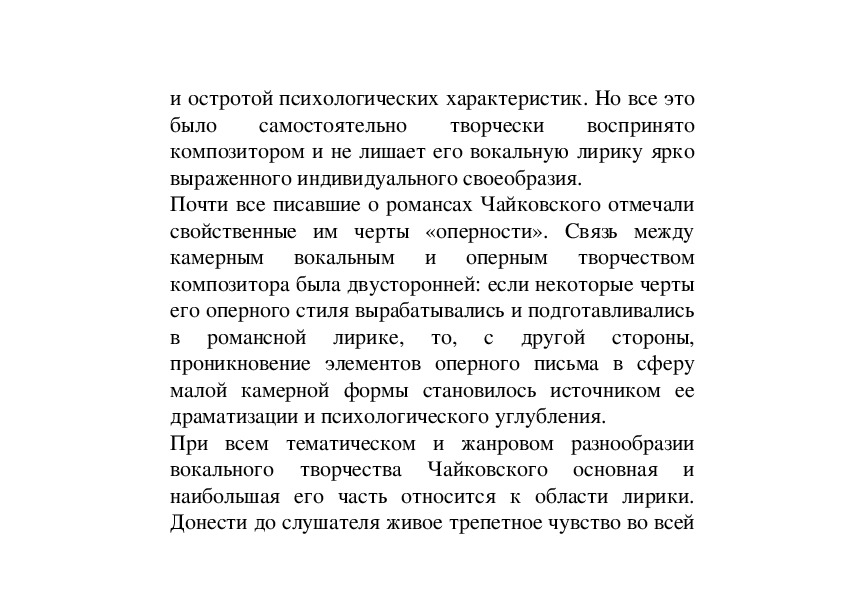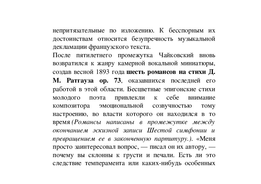 полной мере отношения Чайковского к творчеству