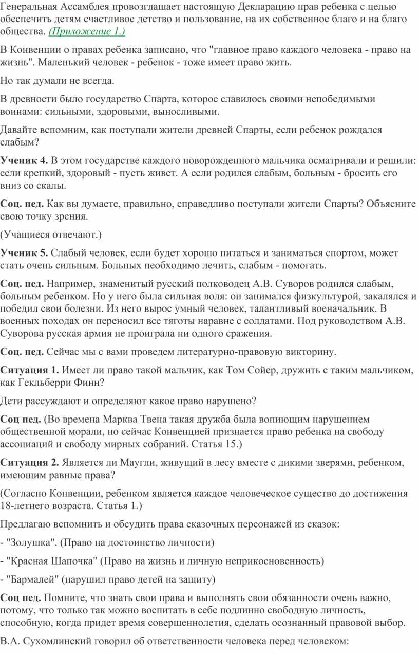 Генеральная Ассамблея провозглашает настоящую Декларацию прав ребенка с целью обеспечить детям счастливое детство и пользование, на их собственное благо и на благо общества. (Приложение 1.)