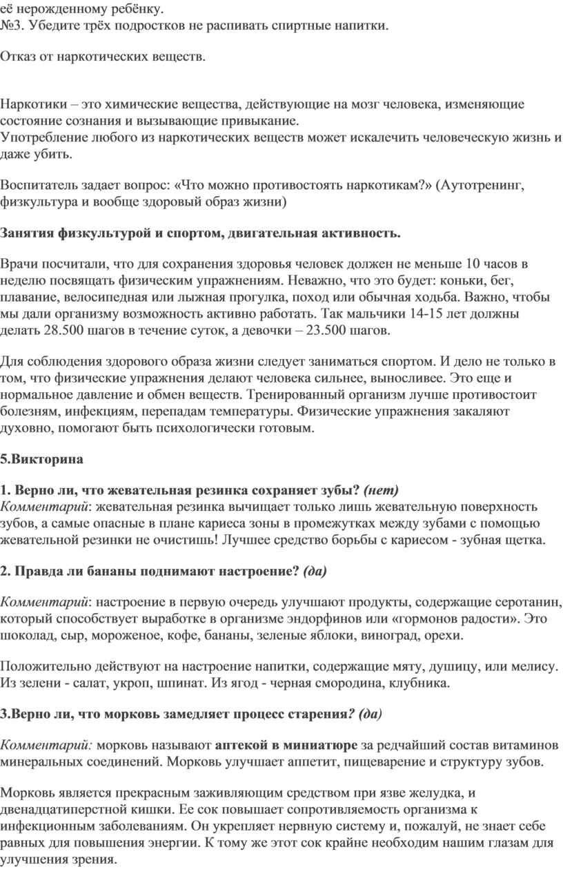 Воспитатель задает вопрос: «Что можно противостоять наркотикам?» (Аутотренинг, физкультура и вообще здоровый образ жизни)
