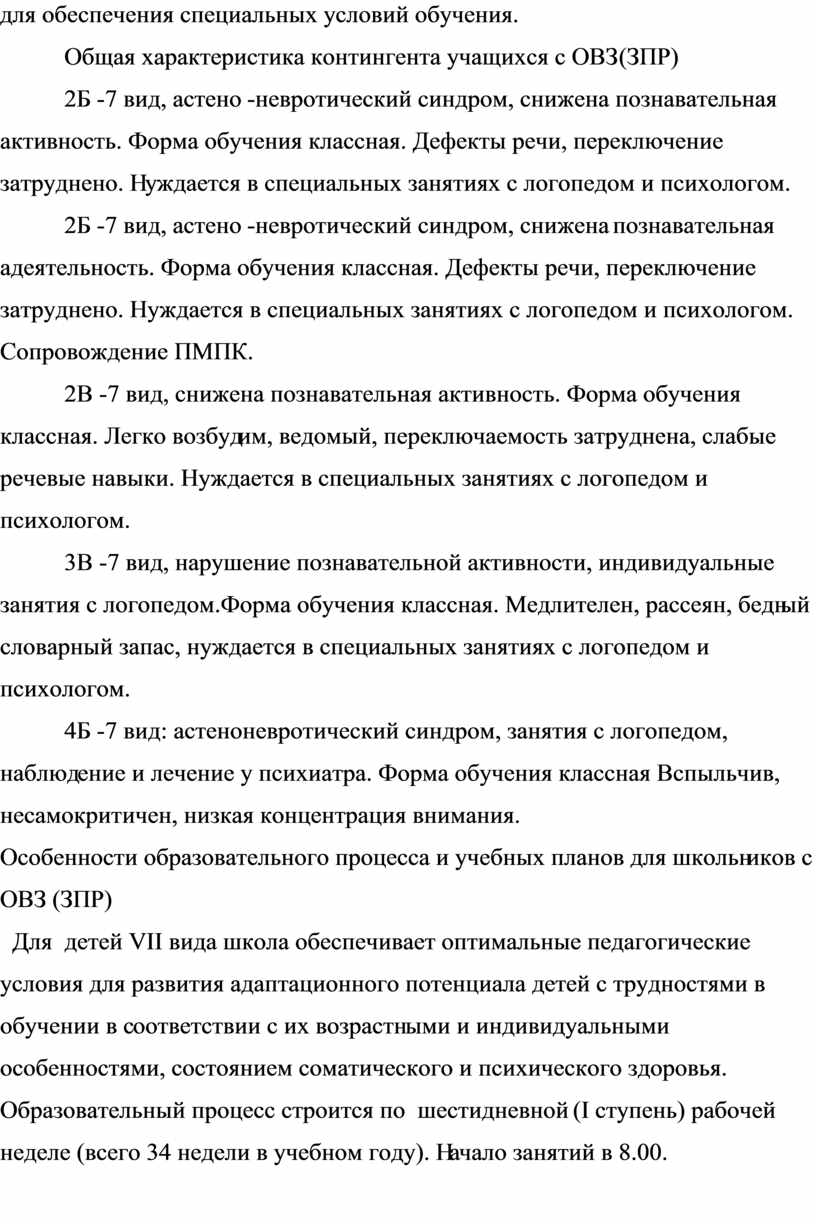 Индивидуальный школьный учебный план для учащихся VII вида создаётся для обучения и воспитания детей с задержкой психического развития, у которых при потенциально сохранных возможностях интеллектуального развития наблюдаются слабость памяти, внимания,