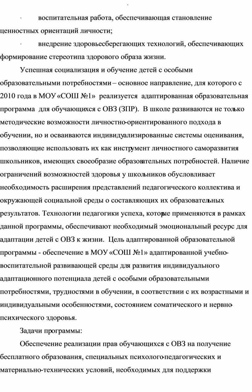 Сохранение и укрепление здоровья обучающихся с ОВЗ на основе совершенствования образовательного процесса;