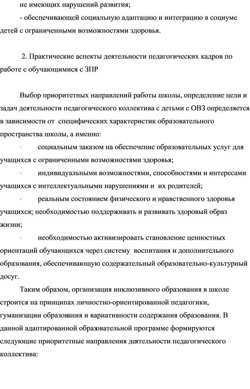 2. Практические аспекты деятельности педагогических кадров по работе с обучающимися с ЗПР............................................................................ 15