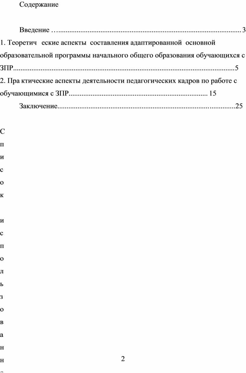 1. Теоретические аспекты составления адаптированной основной образовательной программы начального общего образования обучающихся с ЗПР.........................................................................................................................5