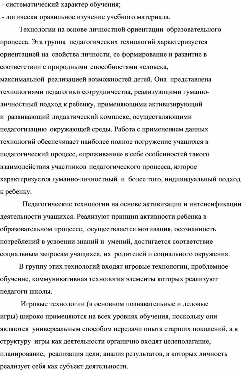 - использование современных педагогических технологий;