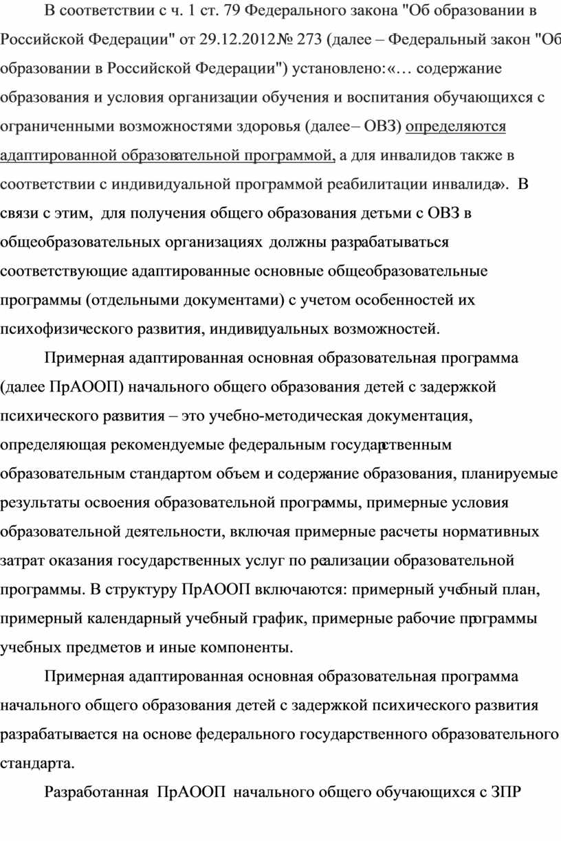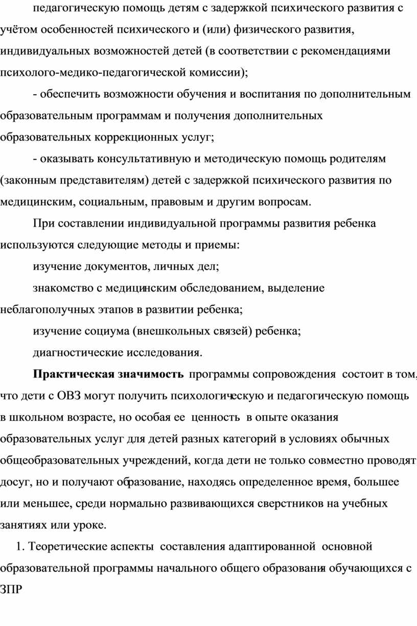 1. Теоретические аспекты составления адаптированной основной образовательной программы начального общего образования обучающихся с ЗПР