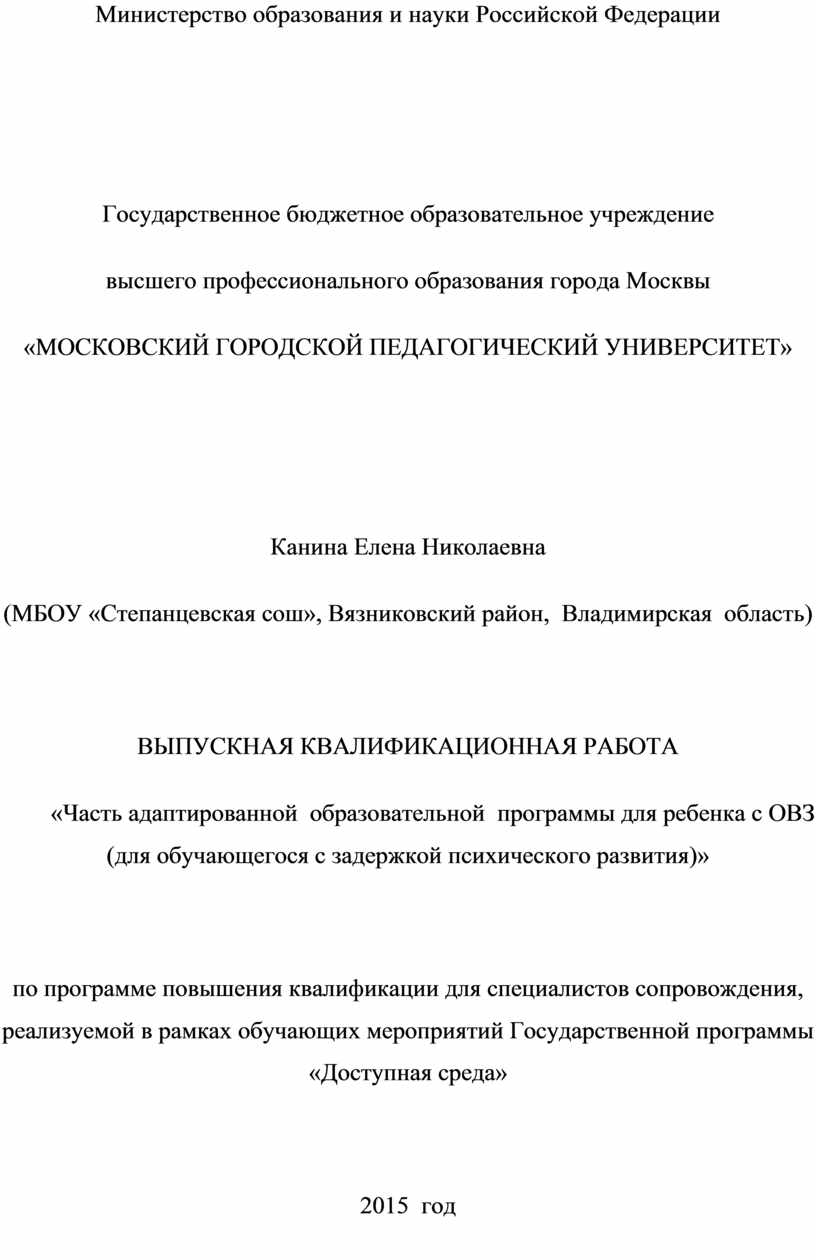 «МОСКОВСКИЙ ГОРОДСКОЙ ПЕДАГОГИЧЕСКИЙ УНИВЕРСИТЕТ»