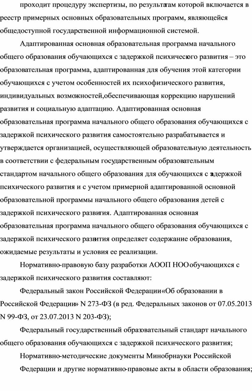 Нормативно-правовую базу разработки АООП НОО обучающихся с задержкой психического развития составляют: