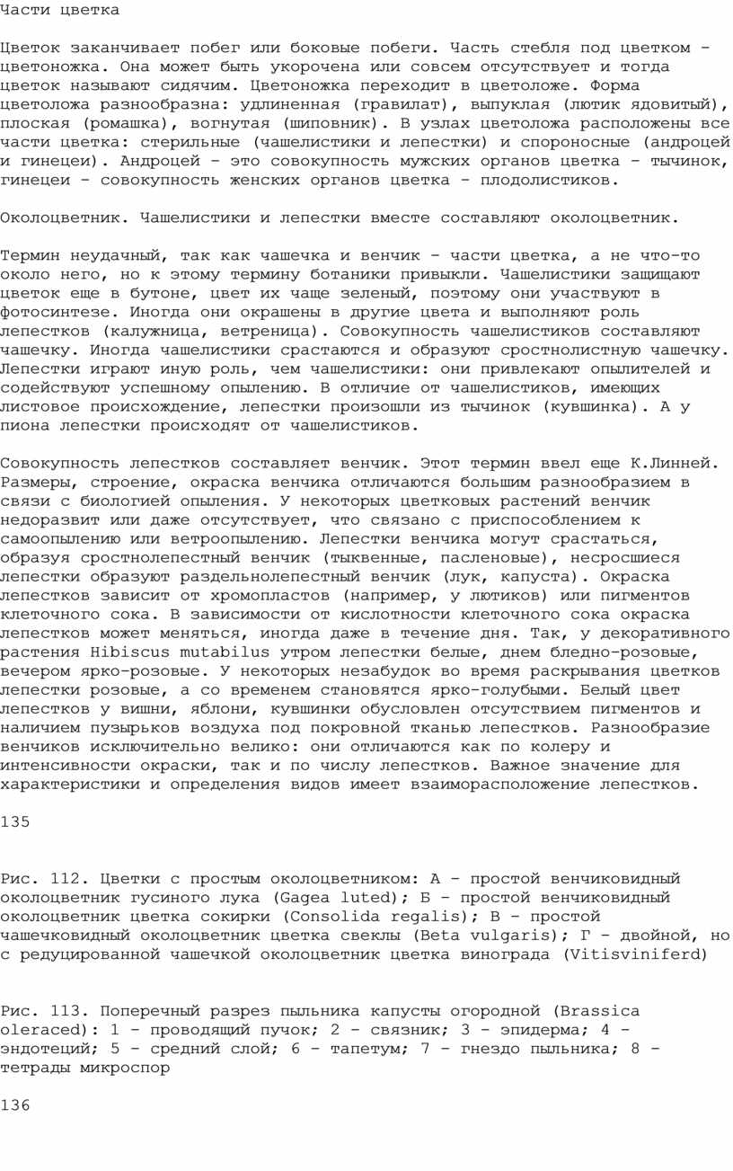Если в цветке есть и чашечка, и венчик, то околоцветник называют двойным (вишня, колокольчик, гвоздика и др.). Простой чашечковидный околоцветник чаще зеленого цвета (щавель, свекла). Простой венчиковидный околоцветник имеет ярко окрашенные лепестки (сокирки, рис. 112). Иногда околоцветник совсем отсутствует, цветки называются голыми (белокрыльник, ива).