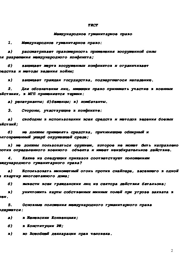 Основные положения международного гуманитарного права