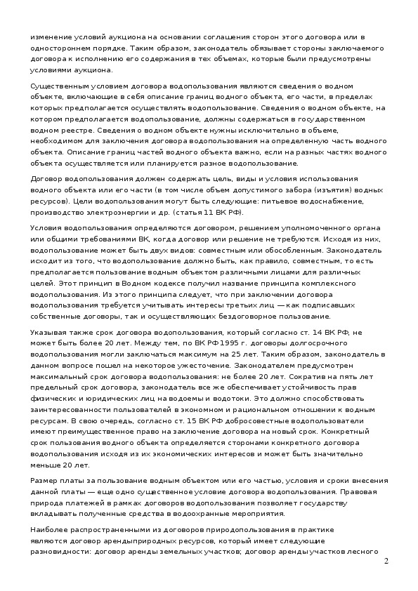 данной платы — еще одно существенное условие договора водопользования. Правовая