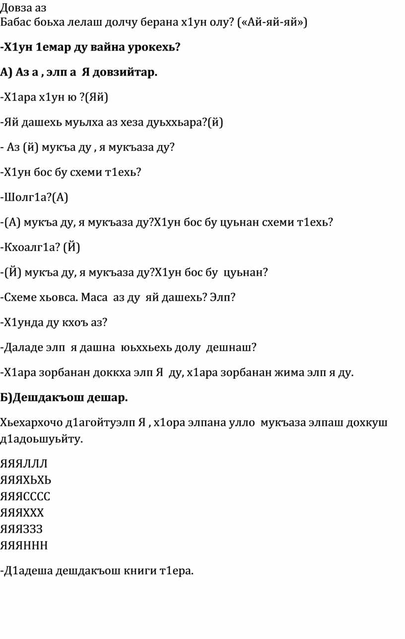 1.Аз а , элп а Я довзийтар, элп Я шиъ аз долуш хилар д1акхачор , элп Я юкъадог1у дешнаш деша 1амор .