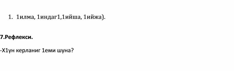 3. 1илма, 1индаг1,1ийша, 1ийжа).