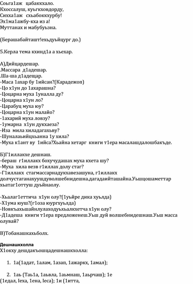 5.Керла тема кхинд1а а хьехар.